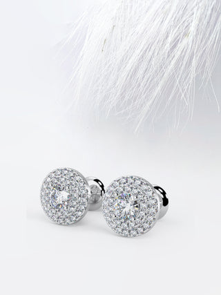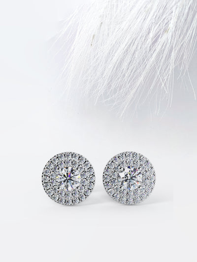 0.6CT Round Cut Double Halo Moissanite Stud Diamond Earrings For Women