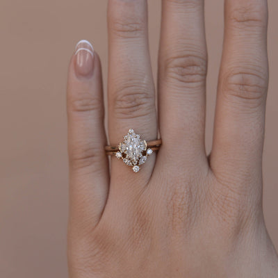 0.75CT Marquise Moissanite Cluster Diamond Wedding Ring Set