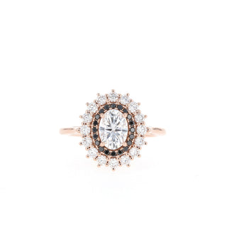 0.75CT Oval Moissanite Double Halo Diamond Engagement Ring