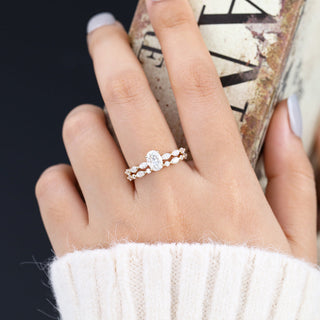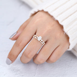 0.84 CT Oval Moissanite Solitaire Bridal Ring Set