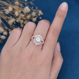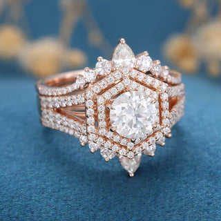 0.88 CT Round Shaped Moissanite Double Halo Bridal Set