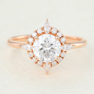 0.88 CT Round Shaped Moissanite Halo Engagement Ring