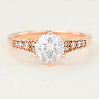 0.88 CT Round Shaped Moissanite Solitaire Engagement Ring