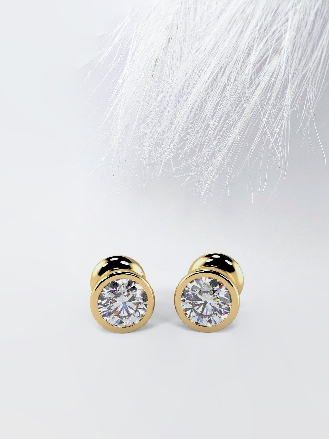 ✥ Introducing our 0.8CT Round Cut Bezel Set Moissanite Stud Diamond Earrings for Women, a stunning blend of modern design and timeless elegance. Each earring features a dazzling 0.8 carat round-cut Moissanite stone delicately encased in a sleek bezel setting, radiating understated sophistication and charm. The bezel setting not only accentuates the brilliance of the Moissanite but also provides a secure and comfortable fit for everyday wear. Crafted with ethically sourced Moissanite stones, renowned for their exceptional sparkle and durability, these earrings offer a sustainable and eco-friendly alternative to traditional diamonds. Elevate your style with these exquisite 0.8CT Round Cut Bezel Set Moissanite Stud Diamond Earrings, and adorn yourself with beauty and grace that captures the essence of modern luxury.
