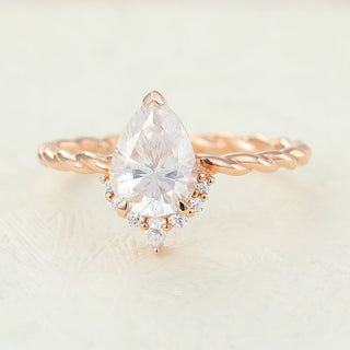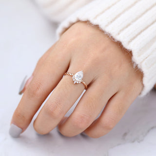 0.90 CT Pear Shaped Moissanite Cluster Engagement Ring