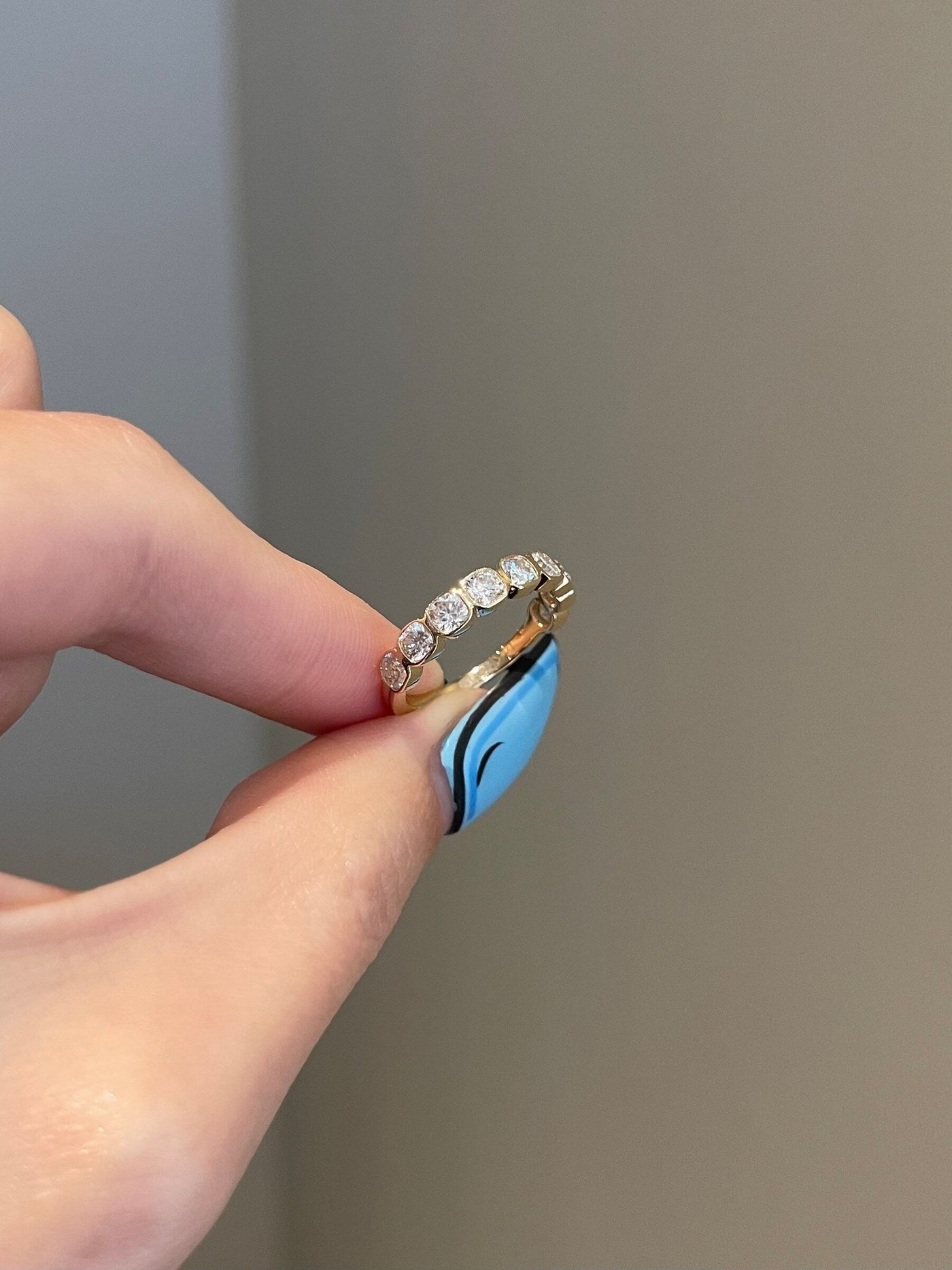 0.90 TCW Cushion Shaped Moissanite Half Eternity Wedding Band