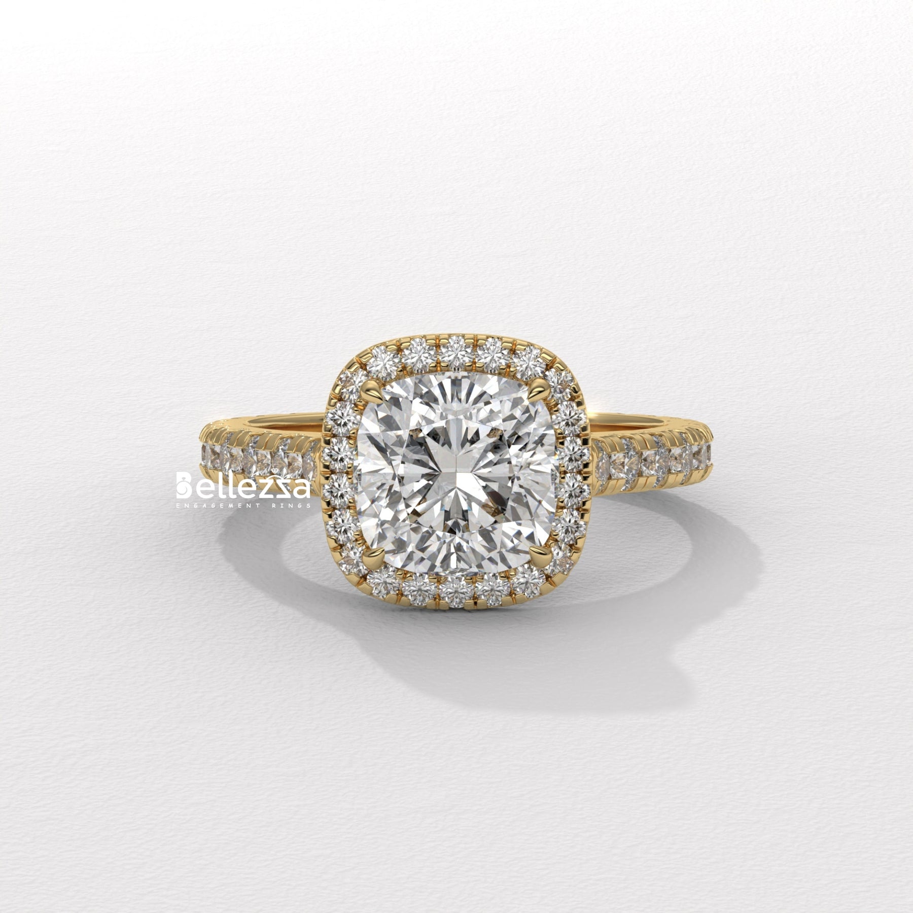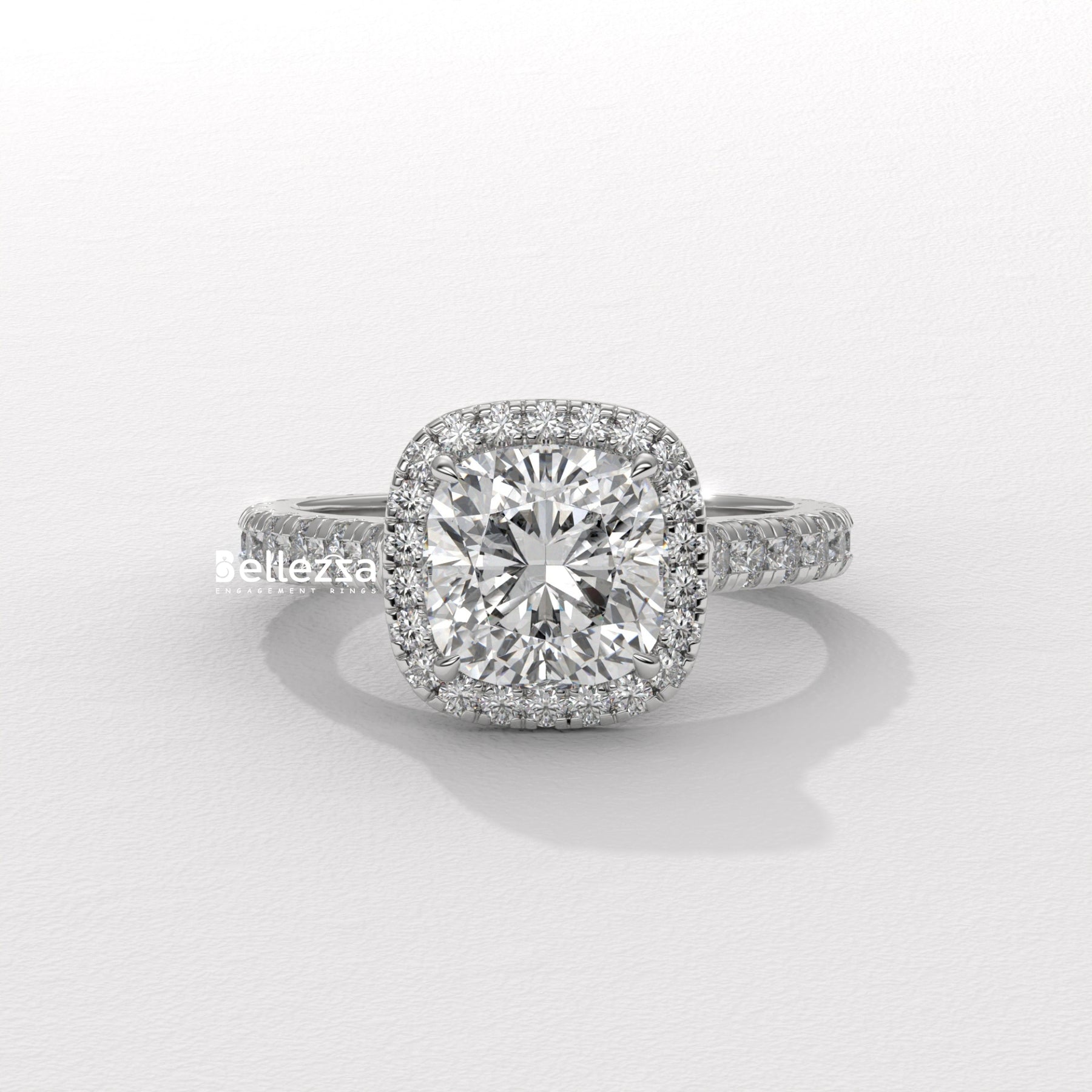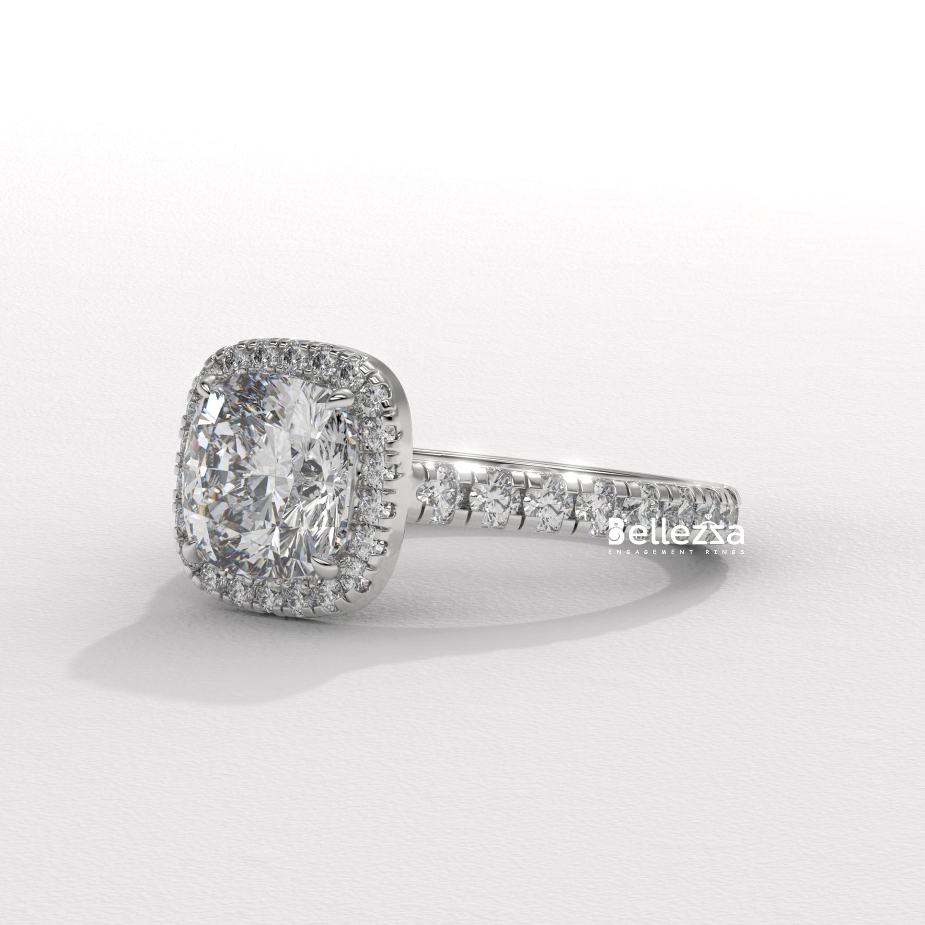1.0-2.0CT Cushion Cut Halo Pave Setting CVD Diamond Engagement Ring