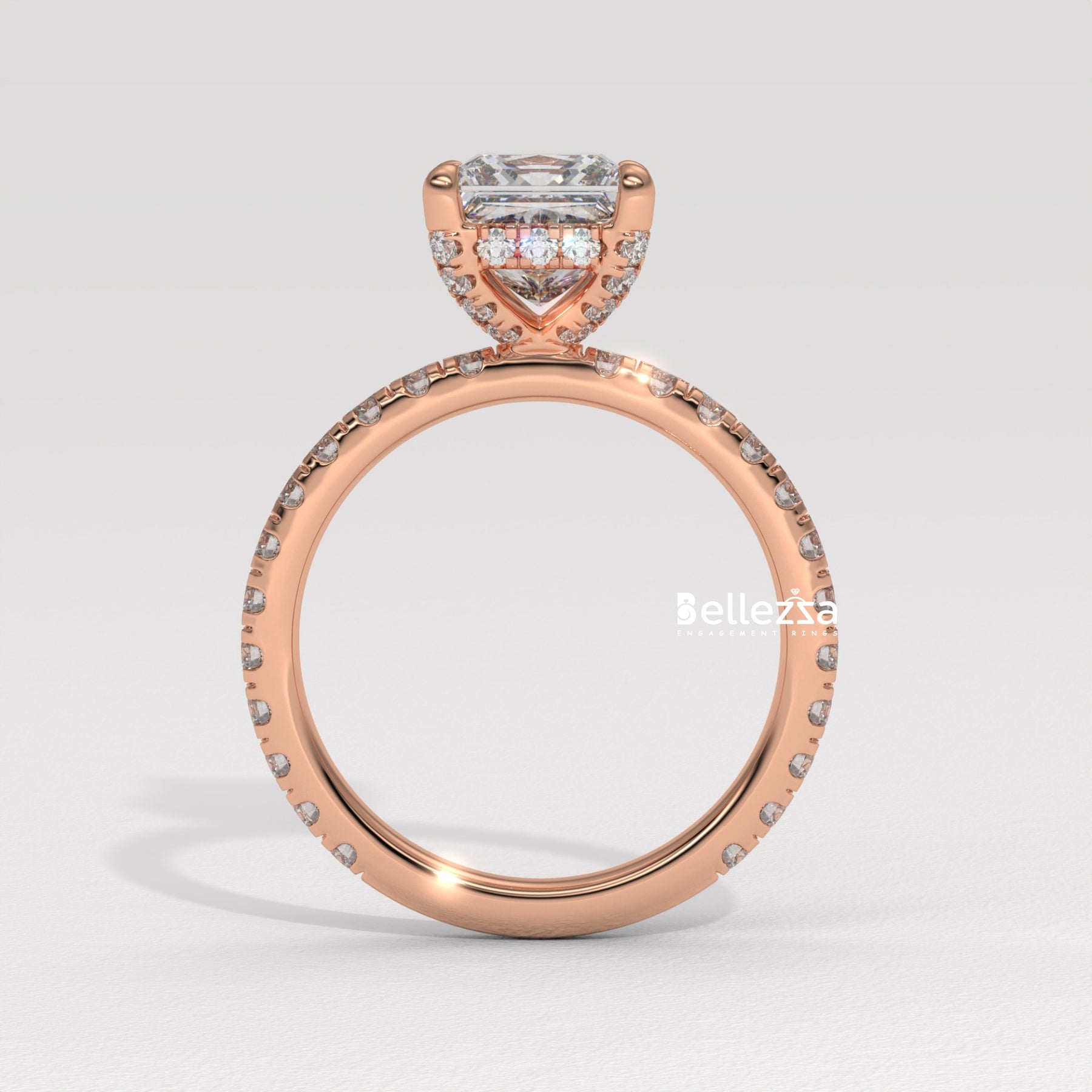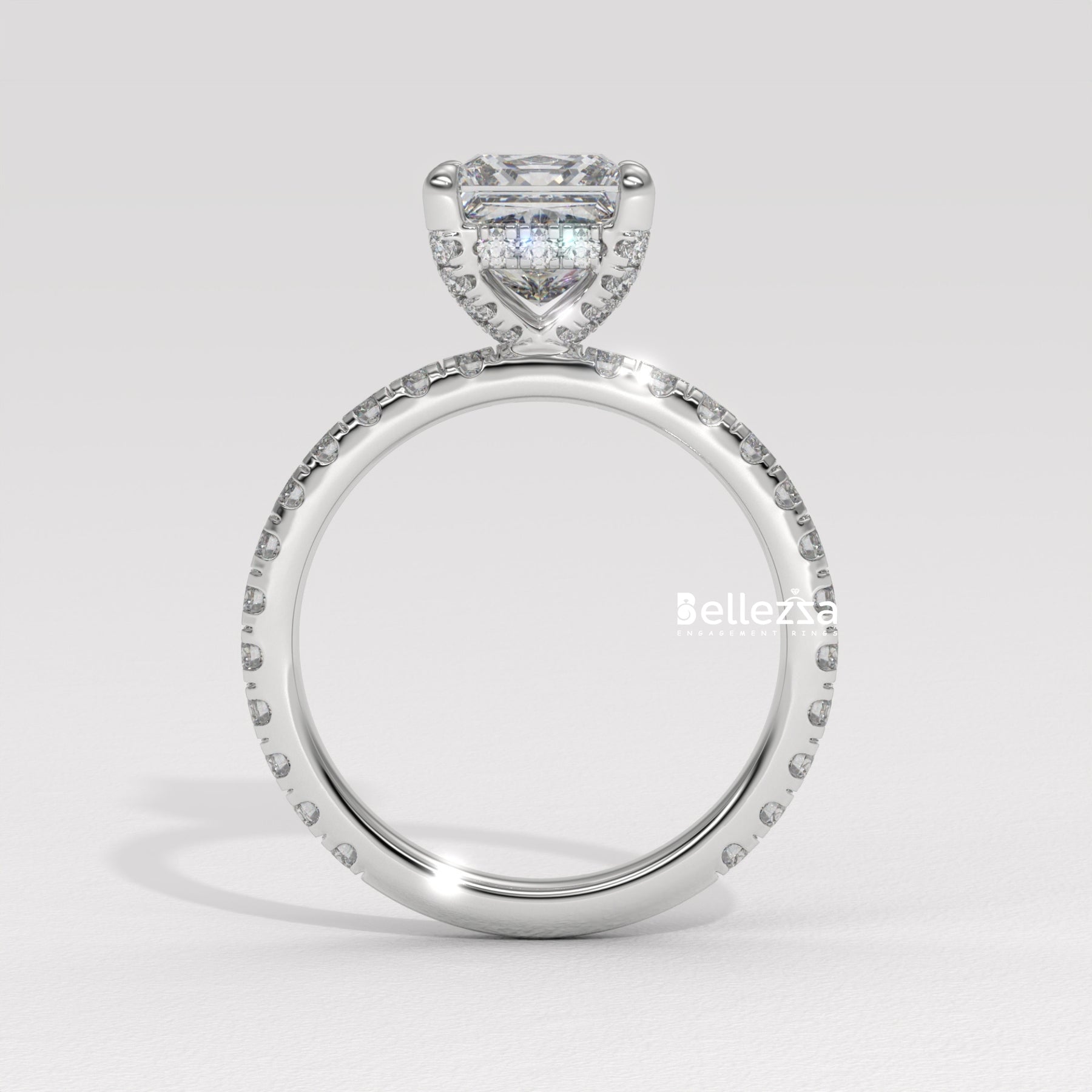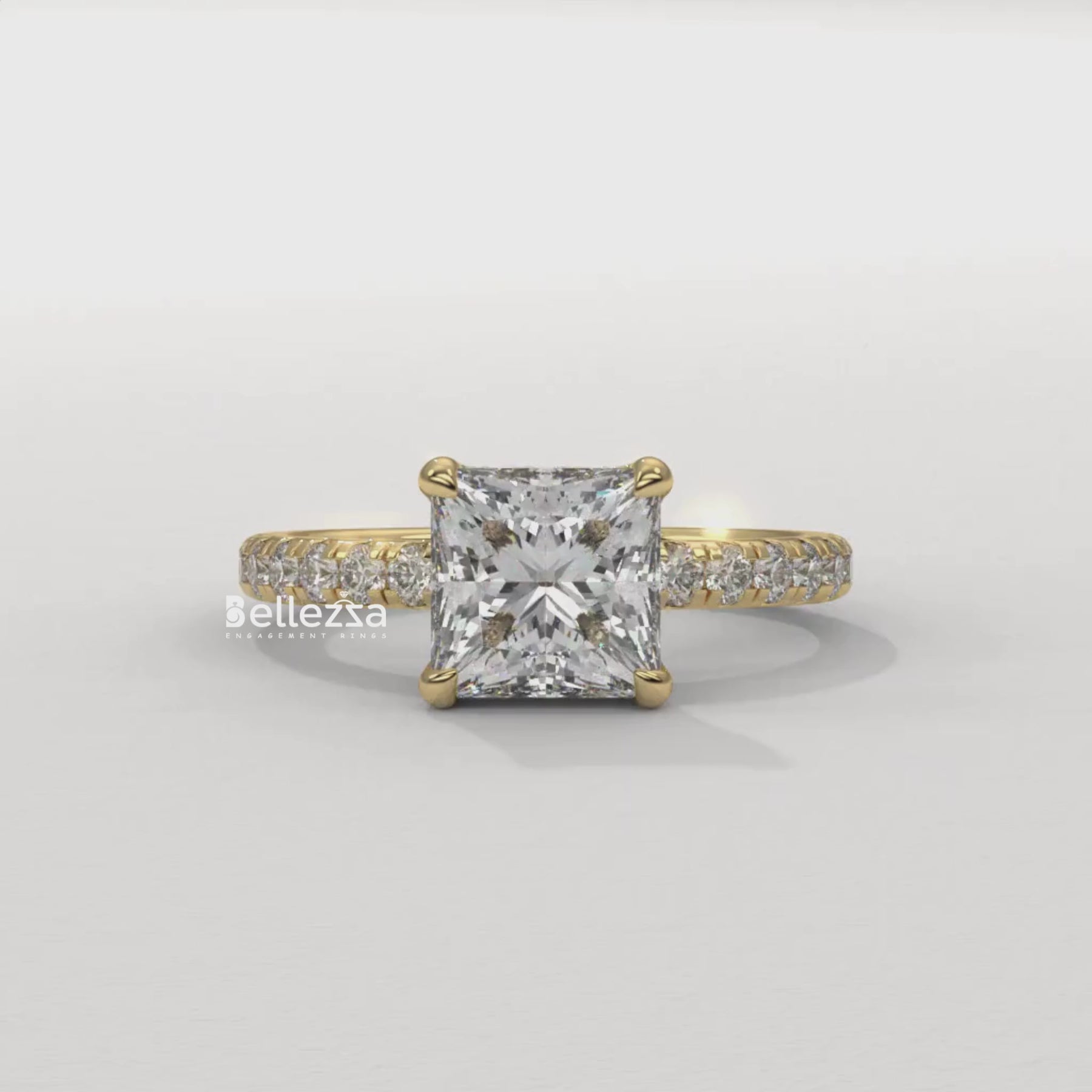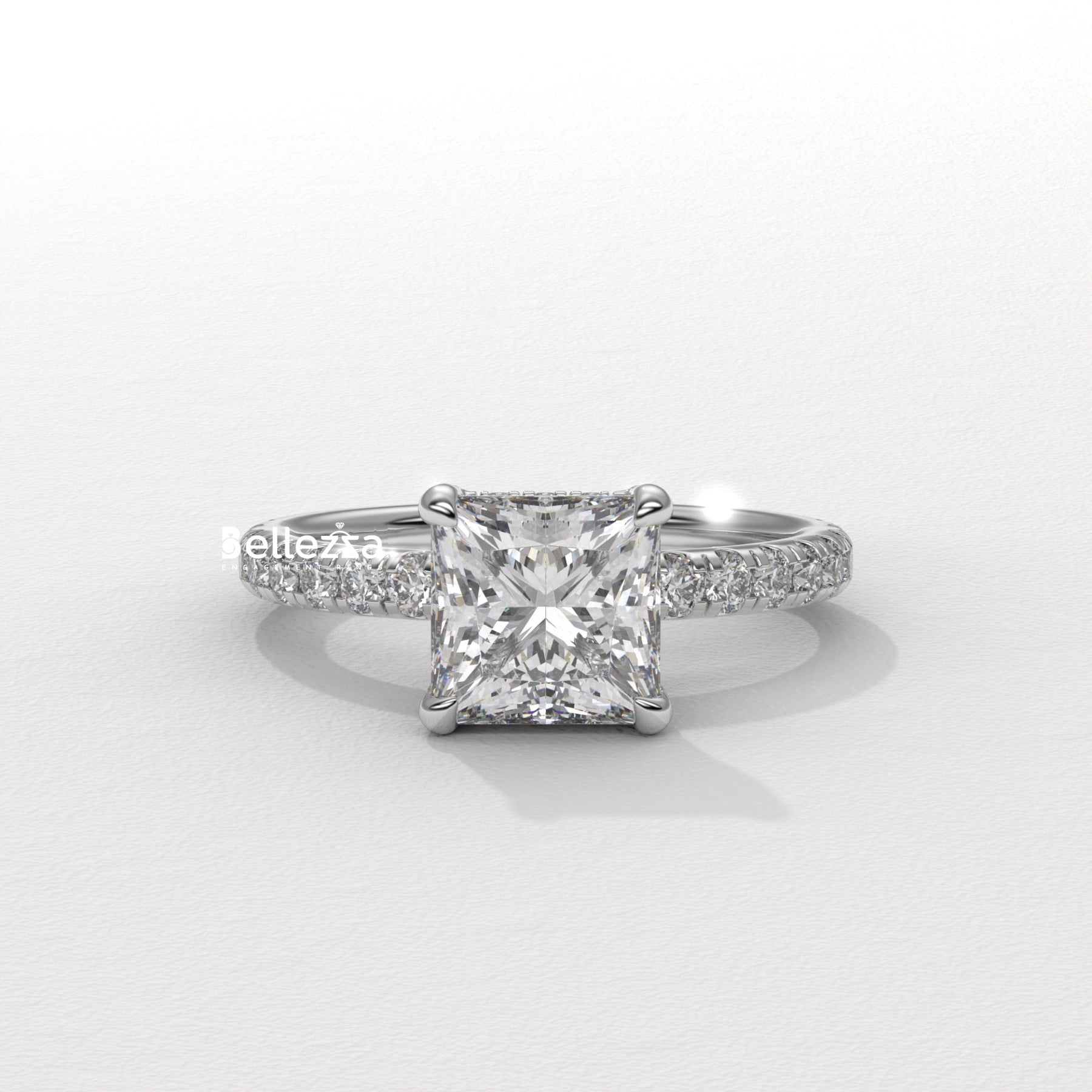 1.0-2.0CT Princess Cut CVD Diamond Pave Setting Engagement Ring