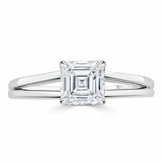 1.0 CT Asscher Cut Solitaire Split Shank Setting Moissanite Engagement Ring
