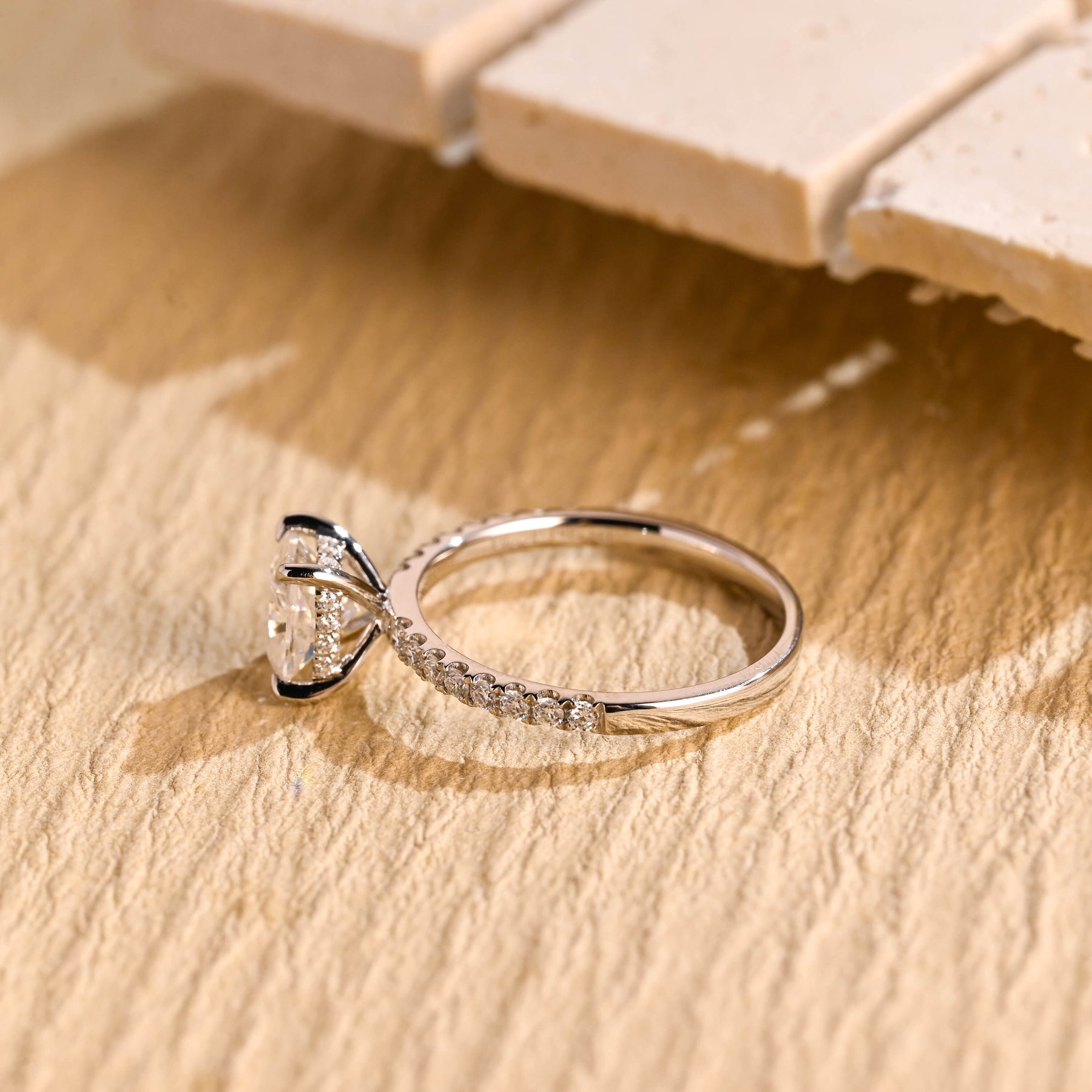 1.0 CT Cushion Cut Hidden Halo Pave Moissanite Engagement Ring