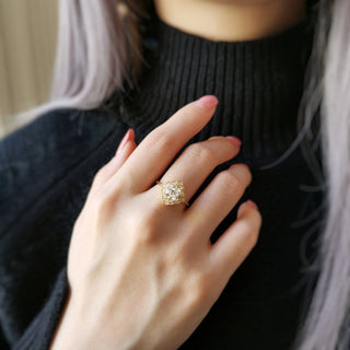 1.0 CT Cushion Shaped Moissanite Art Deco Engagement Ring