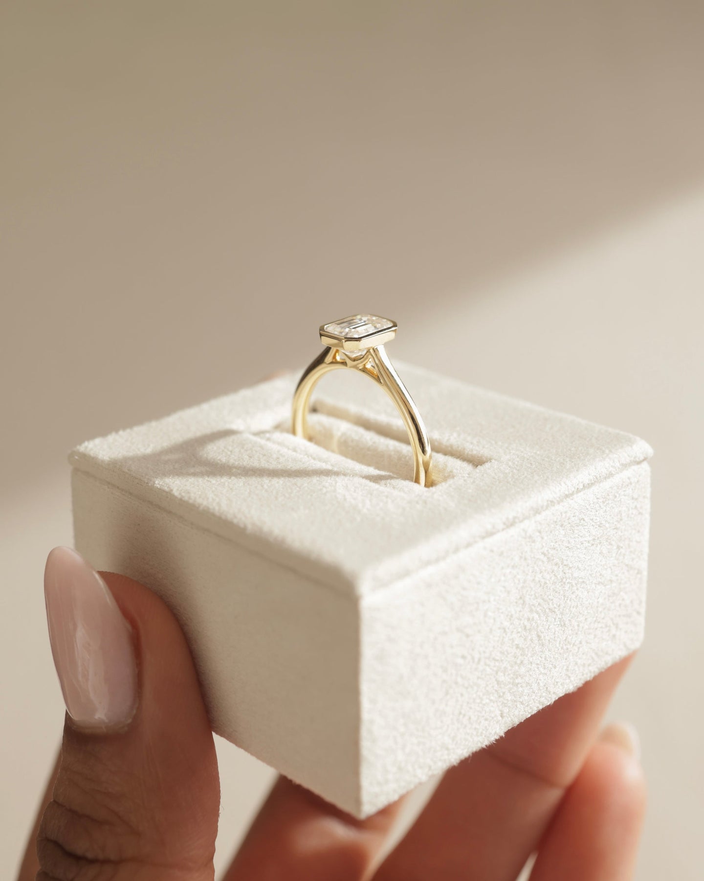 1.0 CT Emerald Cut Bezel Setting Solitaire Moissanite Engagement Ring