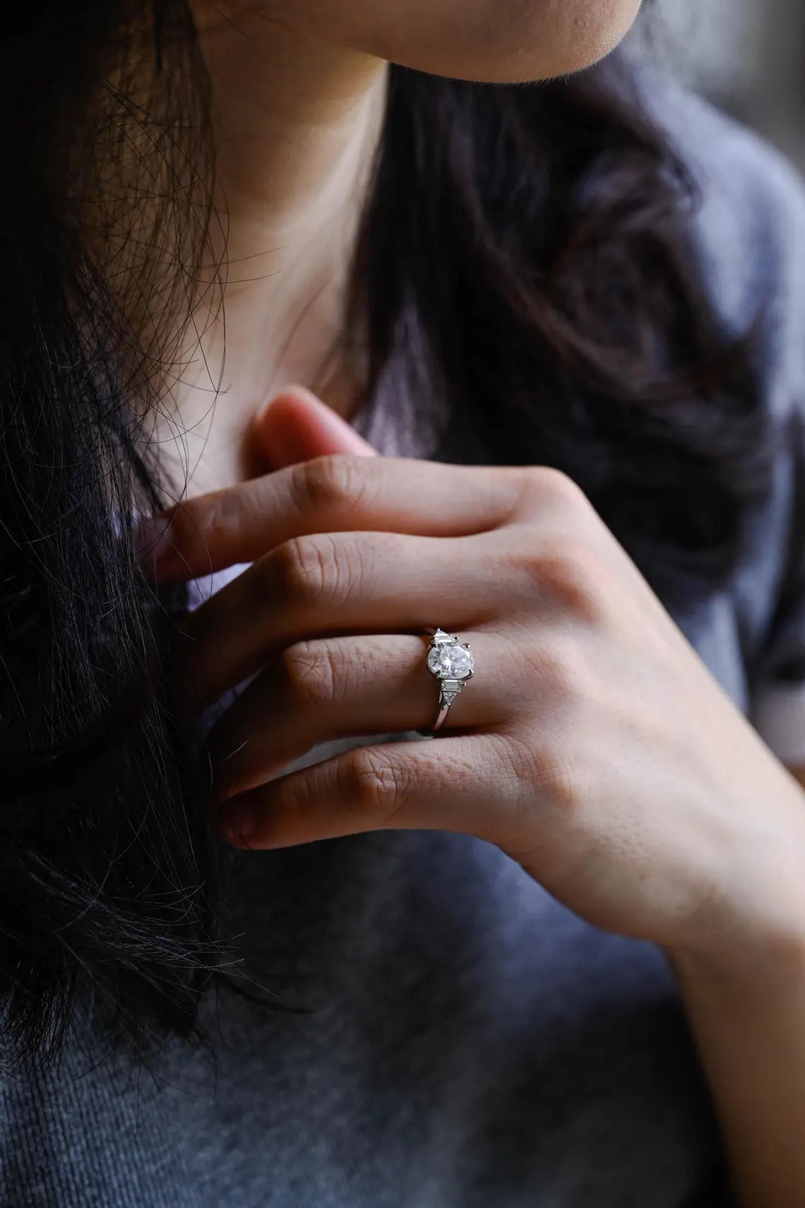 1.0 CT Oval Cut Cluster Diamond Moissanite Engagement Ring
