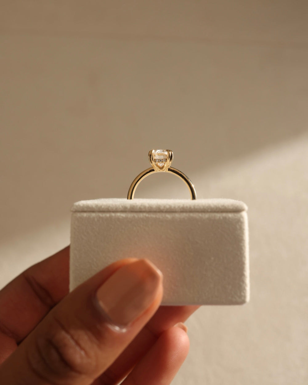 1.0 CT Oval Cut Hidden Halo Moissanite Engagement Ring