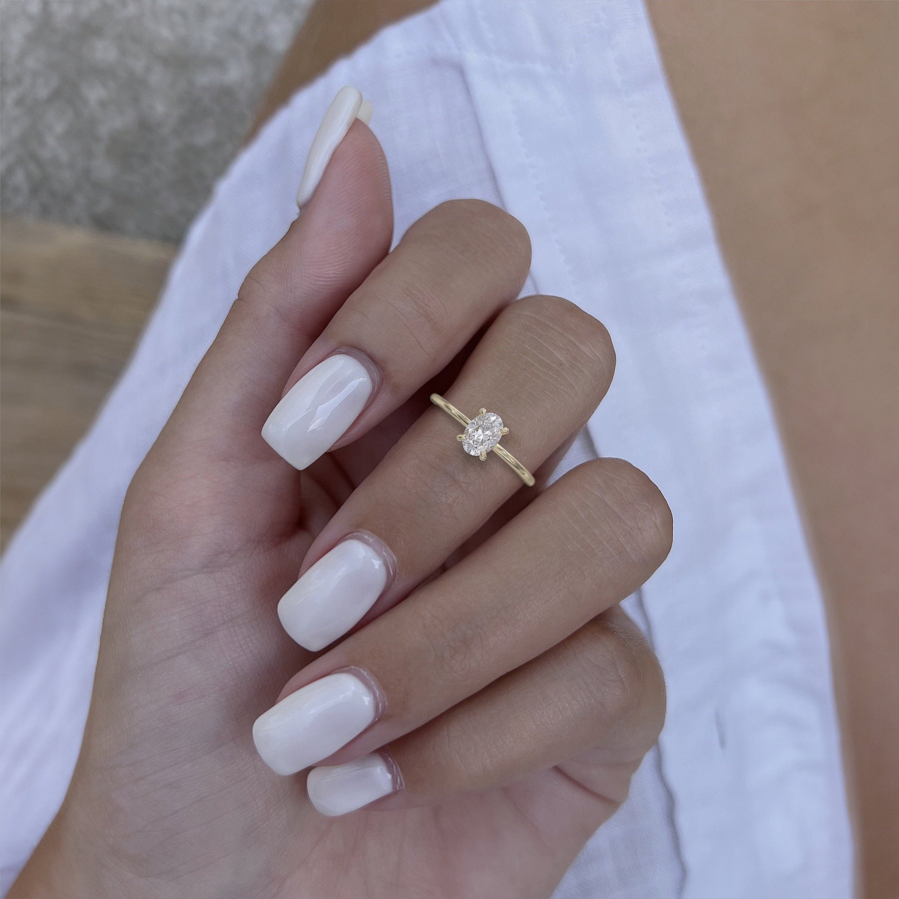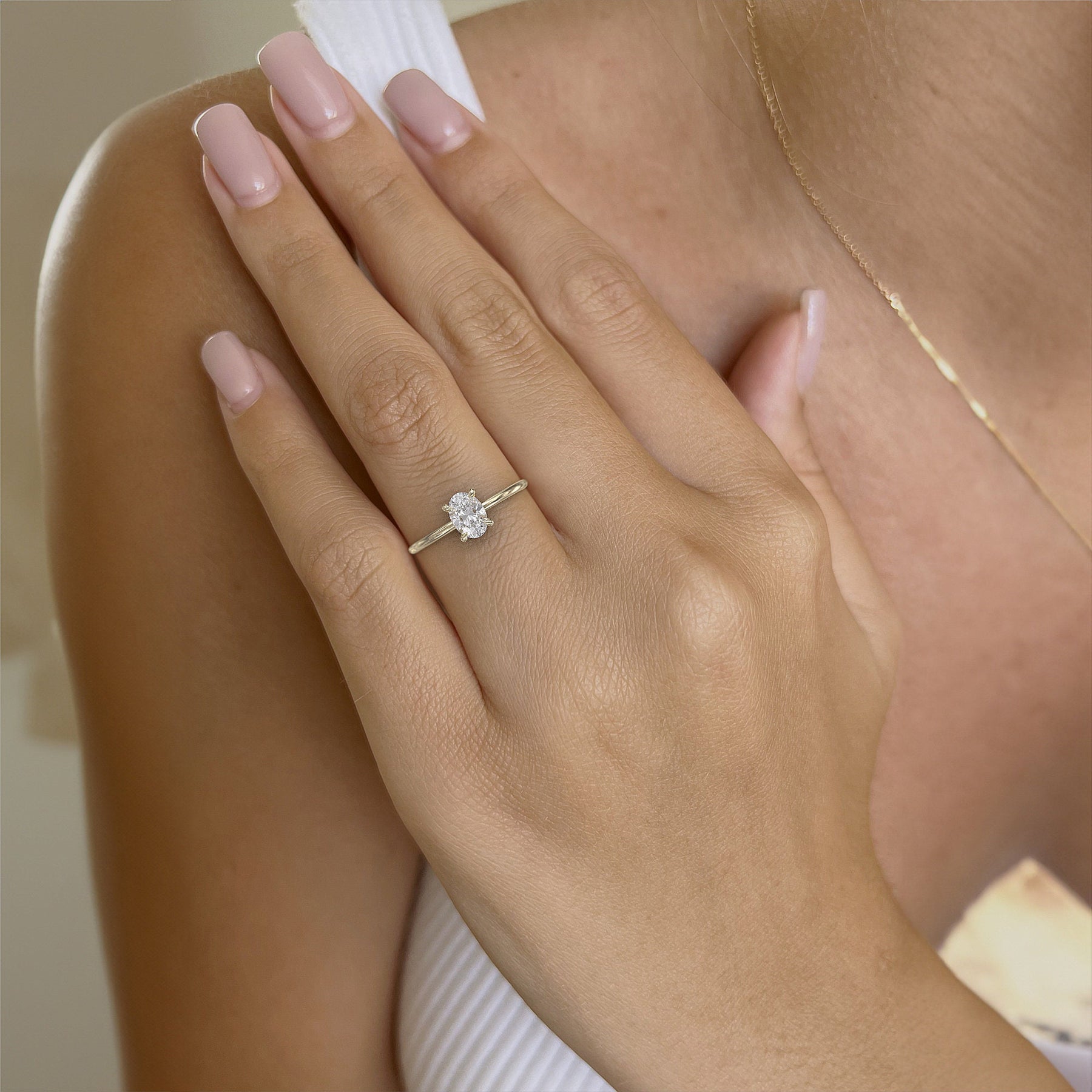 0.8 CT Oval Cut Moissanite Four Prong Diamond Engagement Ring