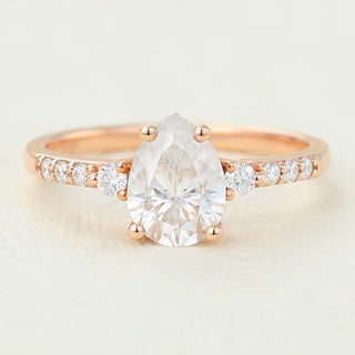1.0 CT Pear Shaped Moissanite Pave Setting Engagement Ring
