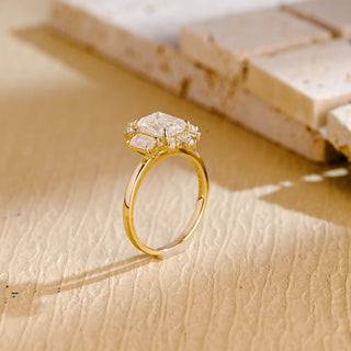 1.50 CT Emerald Cut Cluster Diamond Moissanite Engagement Ring
