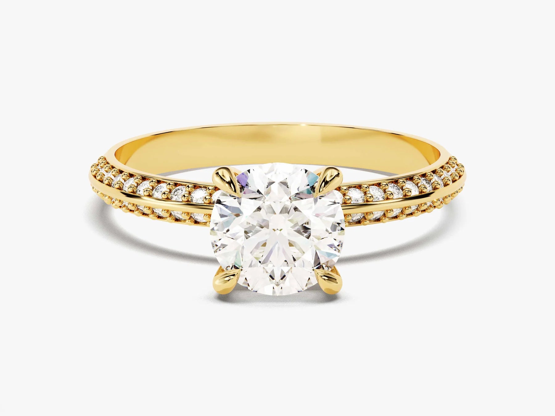 1.0 CT Round Cut Diamond Milgrain Pave Setting Moissanite Engagement Ring