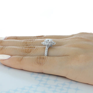 ✥ Discover timeless beauty with our 1.0ct Round Cut Gabriel Halo Moissanite Diamond Ring, a true masterpiece in our Engagement Ring collection. This exquisite ring features a brilliant round-cut moissanite, renowned for its exceptional sparkle and fire, delicately cradled in a captivating halo of sparkling diamonds that extend down the band. Meticulously crafted to perfection, this ring embodies the essence of everlasting love and commitment. It's available in various precious metals, allowing you to choose the perfect symbol of your unique love story. With its classic design and modern allure, this ring promises to capture hearts and create lasting memories for a lifetime of shared happiness and love. Make your engagement a moment of pure radiance and elegance with this remarkable piece.
