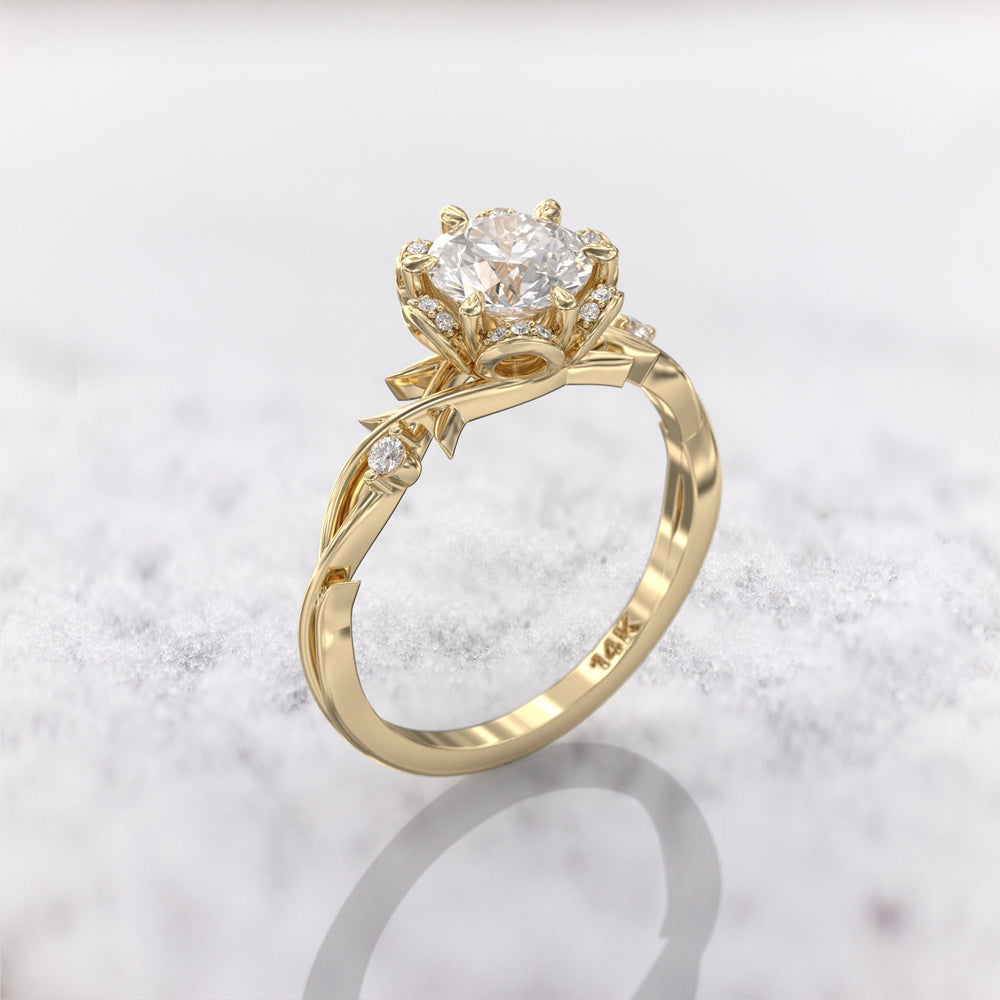1.0 CT Round Cut Halo Moissanite Diamond Twig Engagement Ring