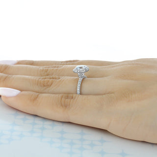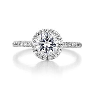1.0CT Round Cut Halo Moissanite Engagement Ring in 18K White Gold