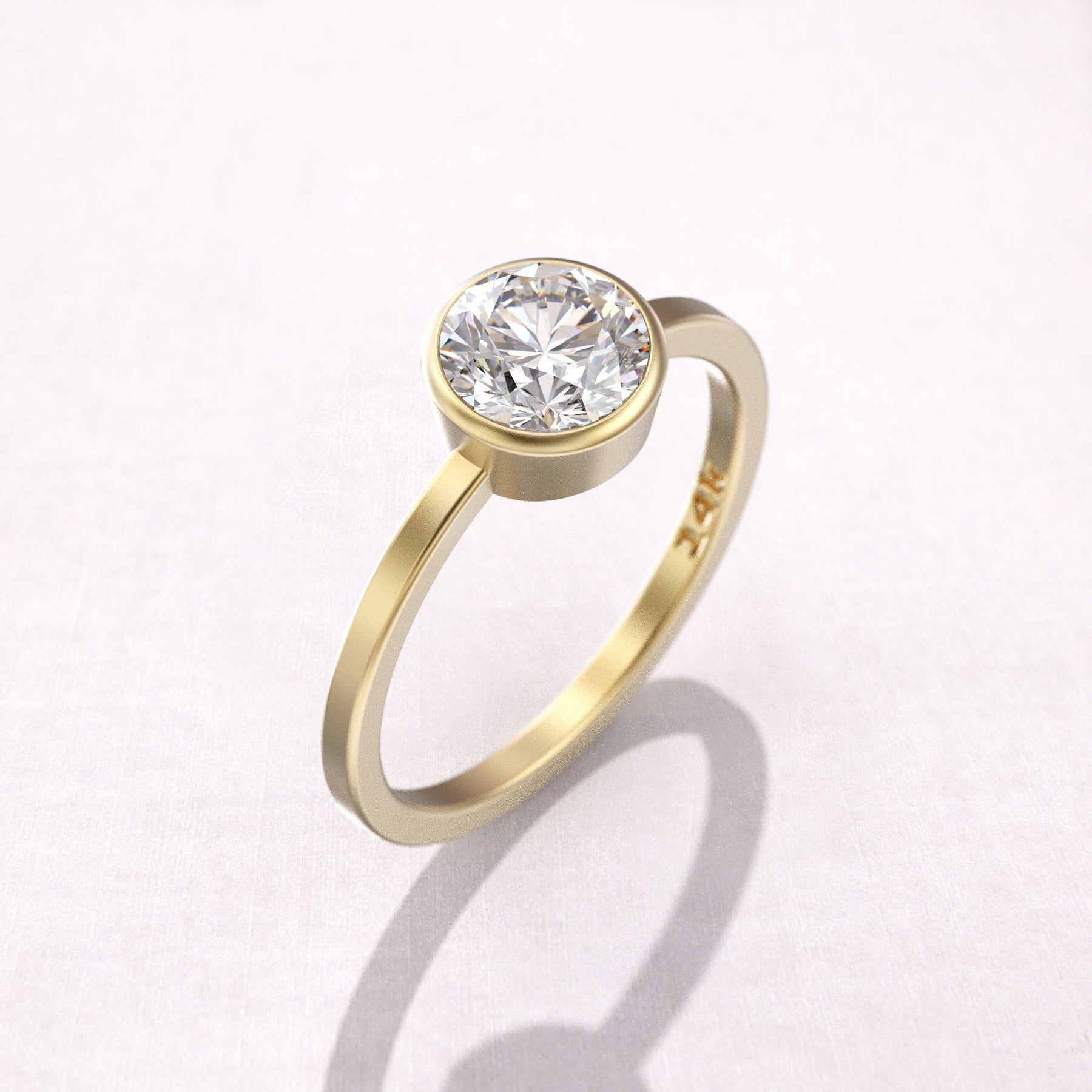 2.0 CT Round Cut Solitaire Moissanite Diamond Bezel Engagement Ring