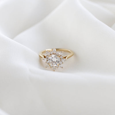 1.05CT Round Cut Cluster Moissanite Diamond Engagement Ring