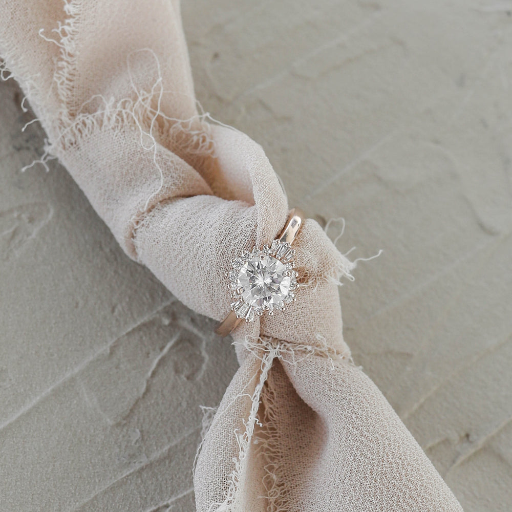 1.05CT Round Cut Cluster Moissanite Diamond Engagement Ring