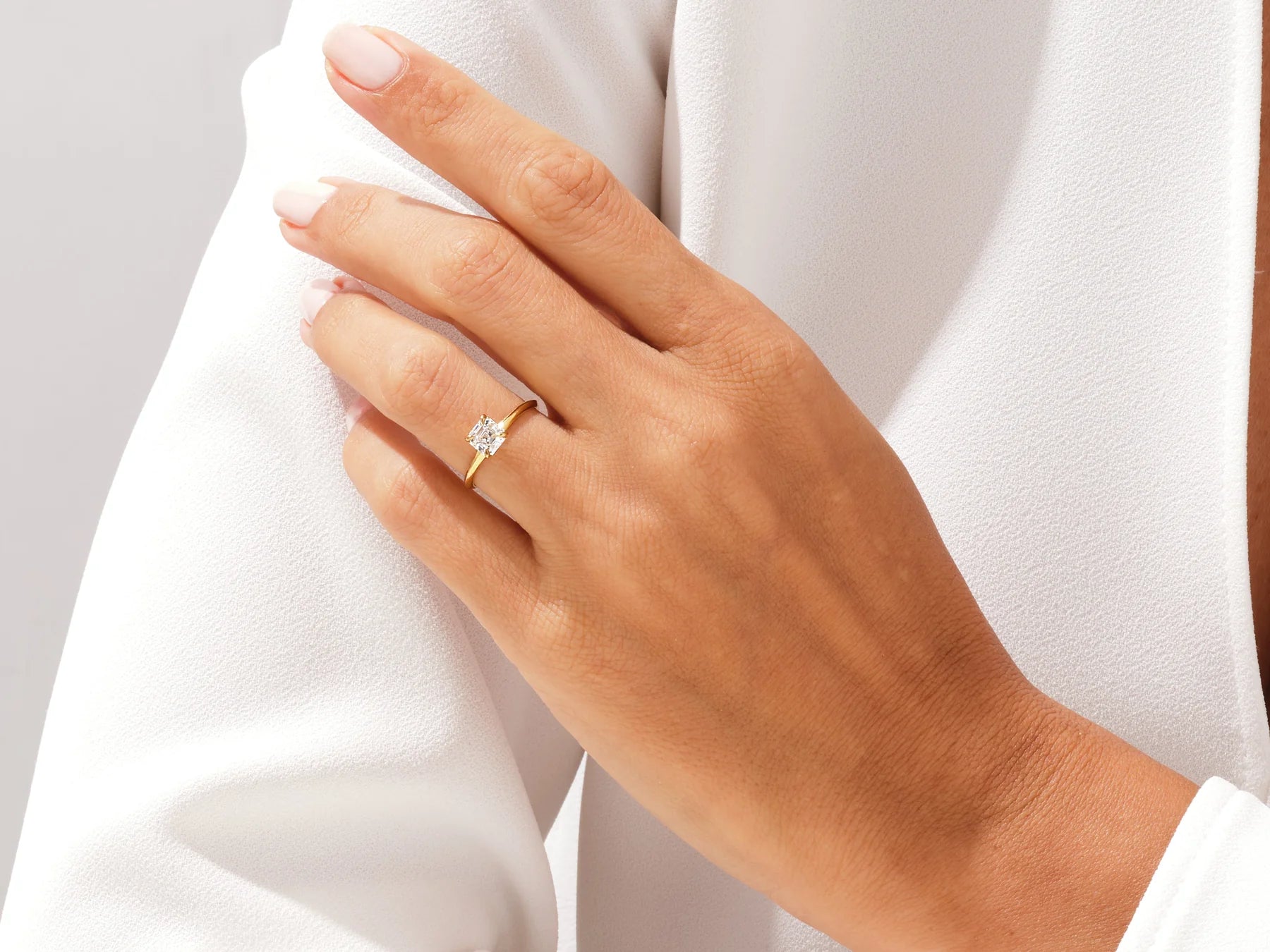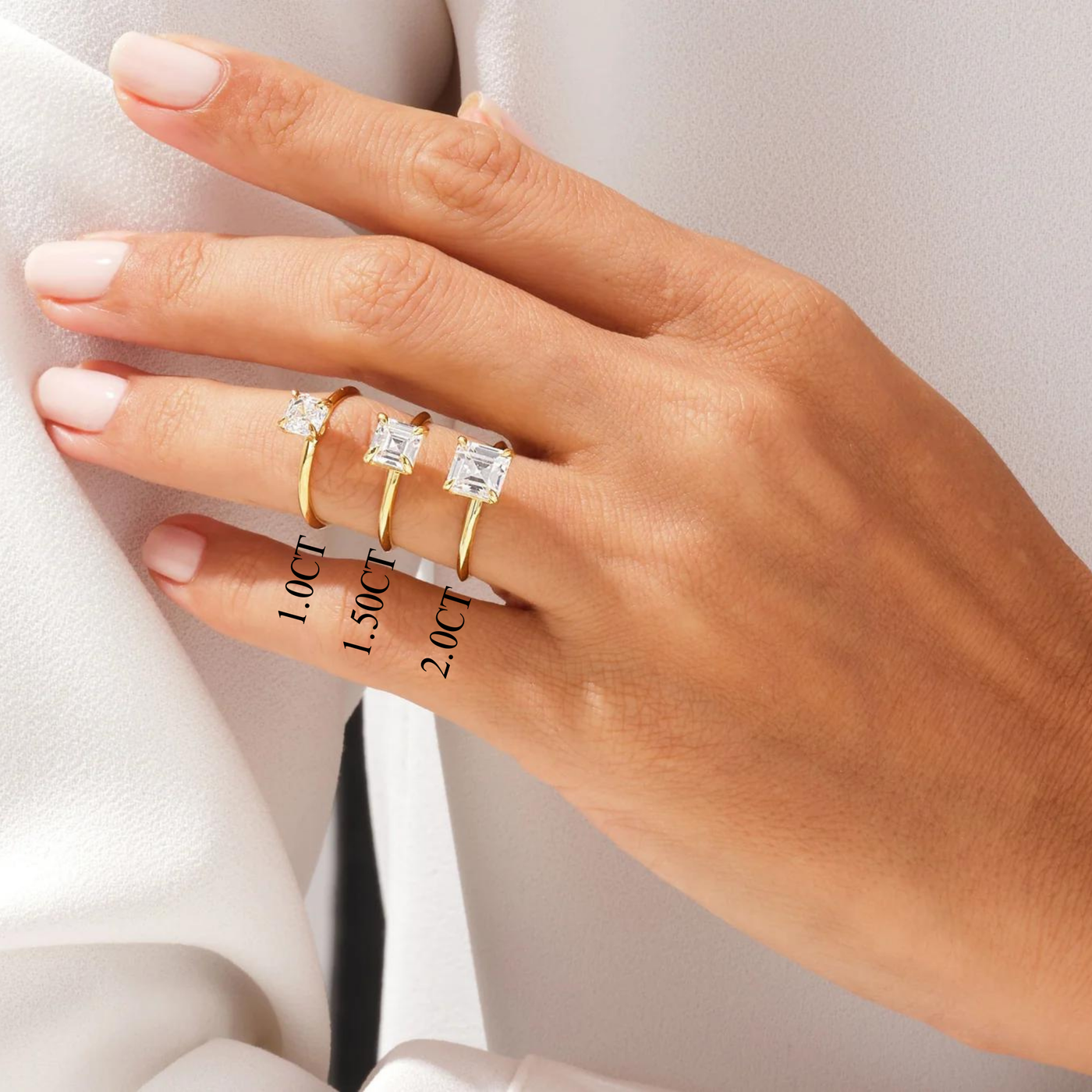 1.0CT Asscher Diamond Knife Edge Solitaire Moissanite Engagement Ring