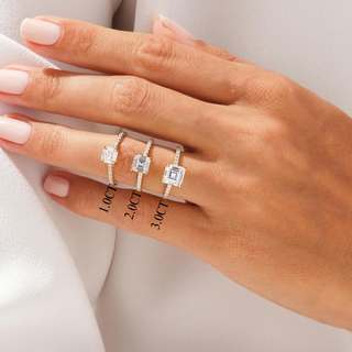 1.0CT Asscher Diamond Pave Setting Moissanite Engagement Ring