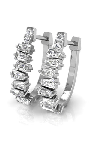 1.0CT Baguette & Round Cut Moissanite Hoop Diamond Earrings For Her