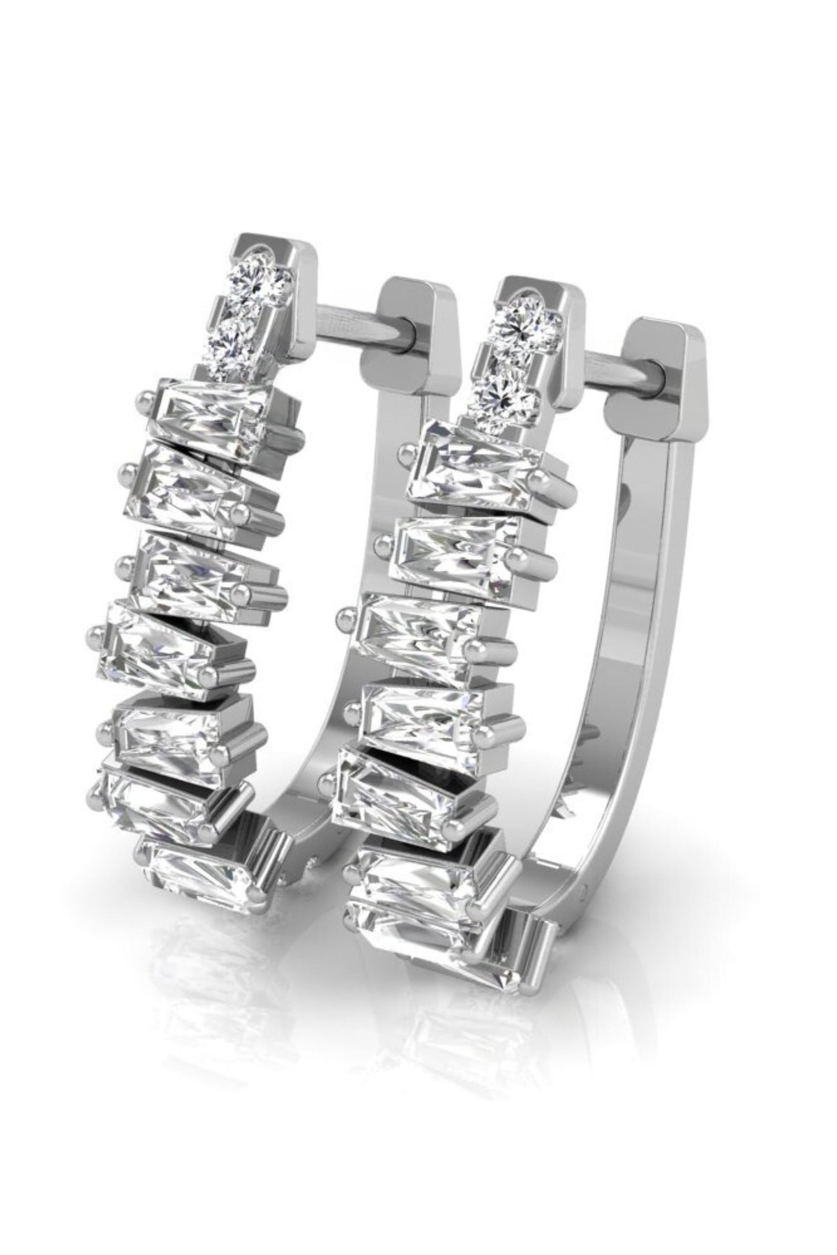1.0CT Baguette & Round Cut Moissanite Stud Diamond Earrings For Women