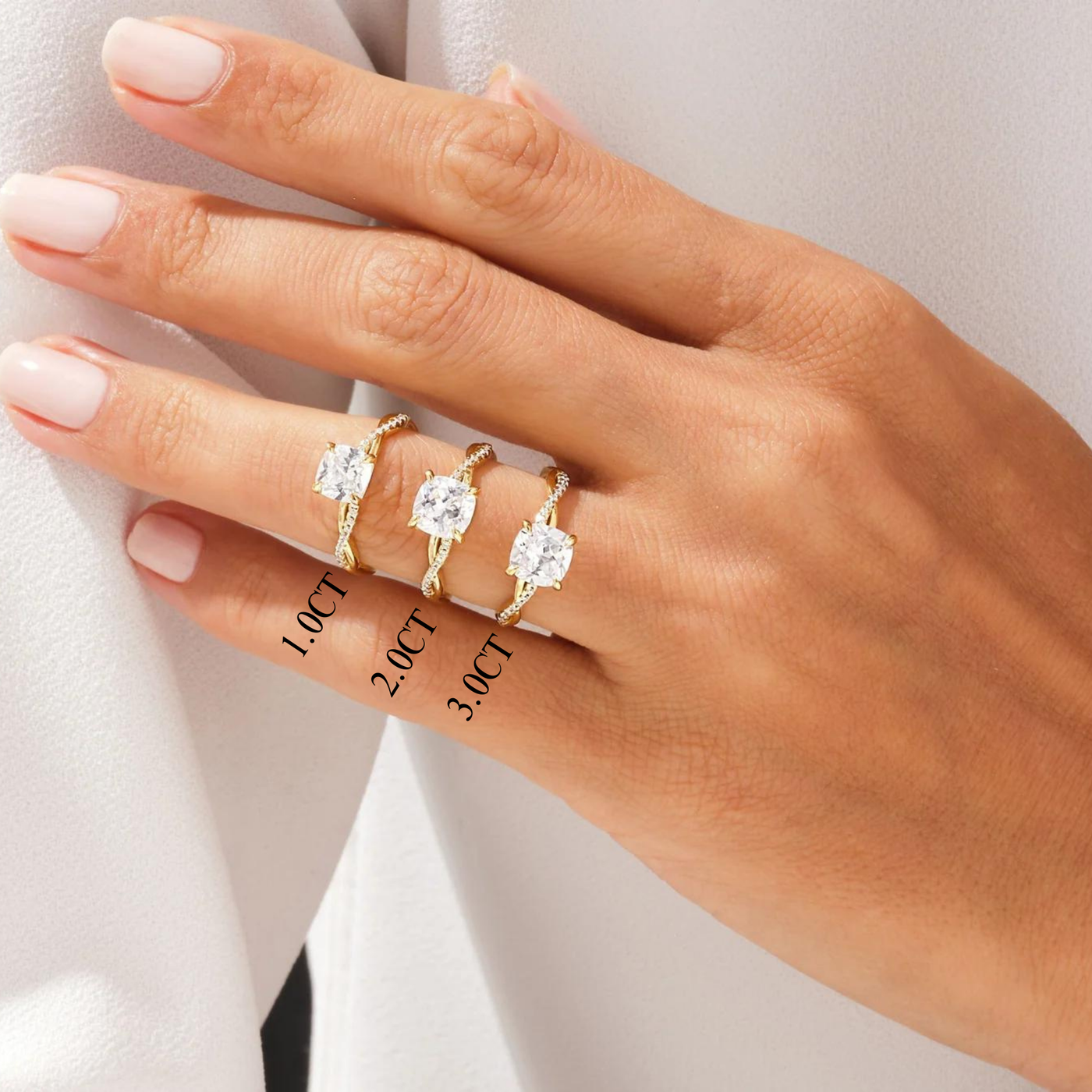 1.0CT Cushion Diamond Twisted Pave Setting Moissanite Engagement Ring