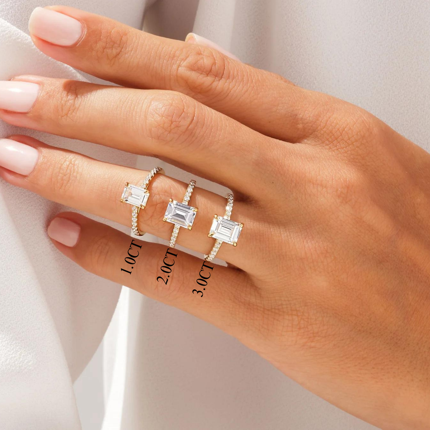 1.0CT Emerald Diamond Pave Setting Moissanite Engagement Ring