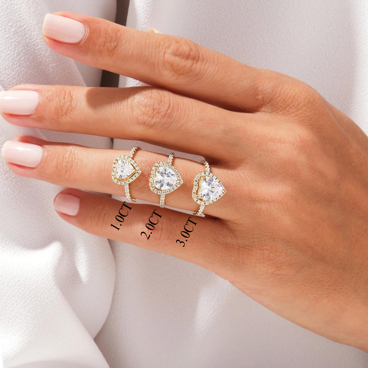1.0CT Heart Diamond Halo Pave Setting Moissanite Engagement Ring