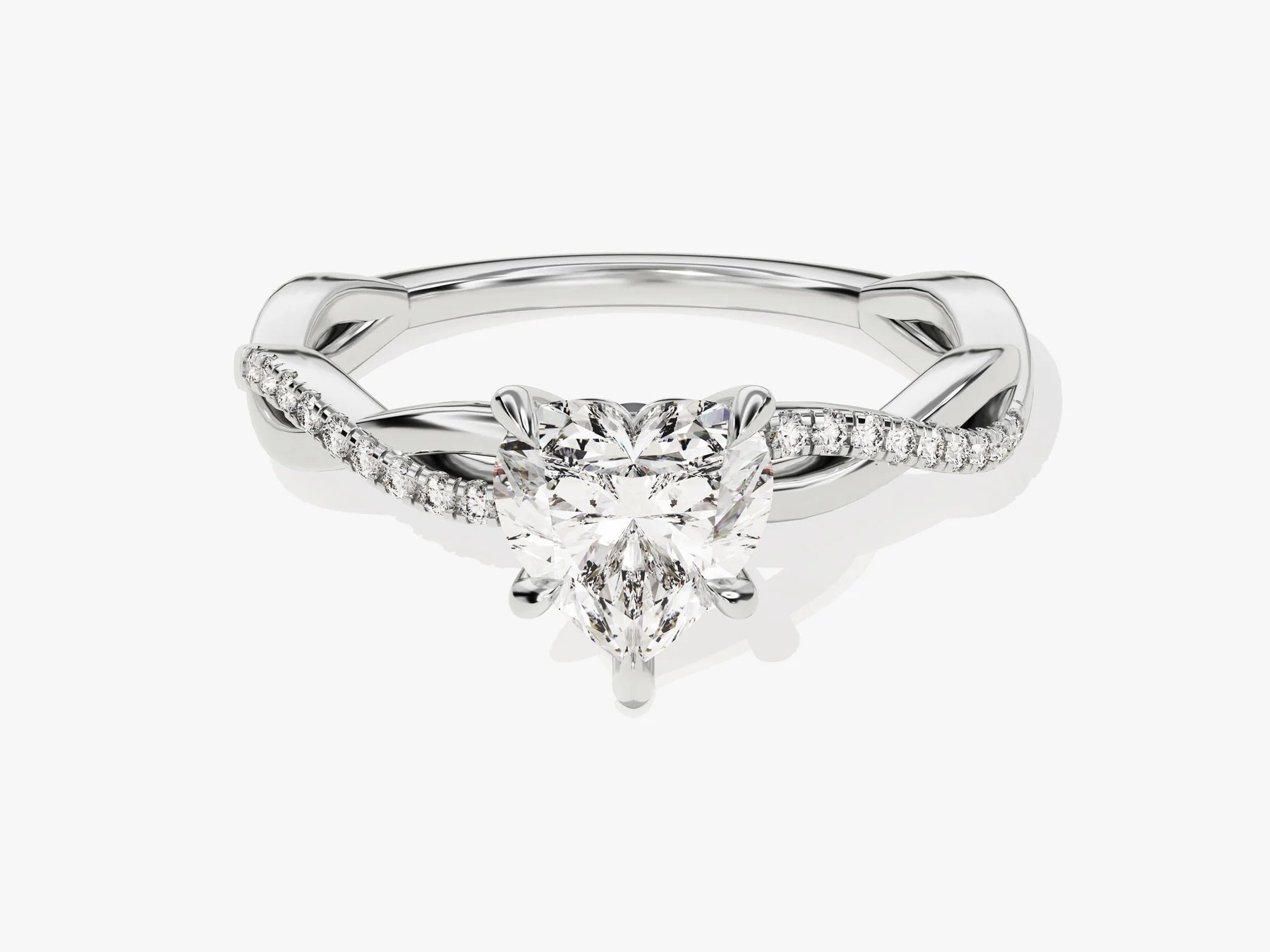1.0CT Heart Diamond Twisted Pave Setting Moissanite Engagement Ring