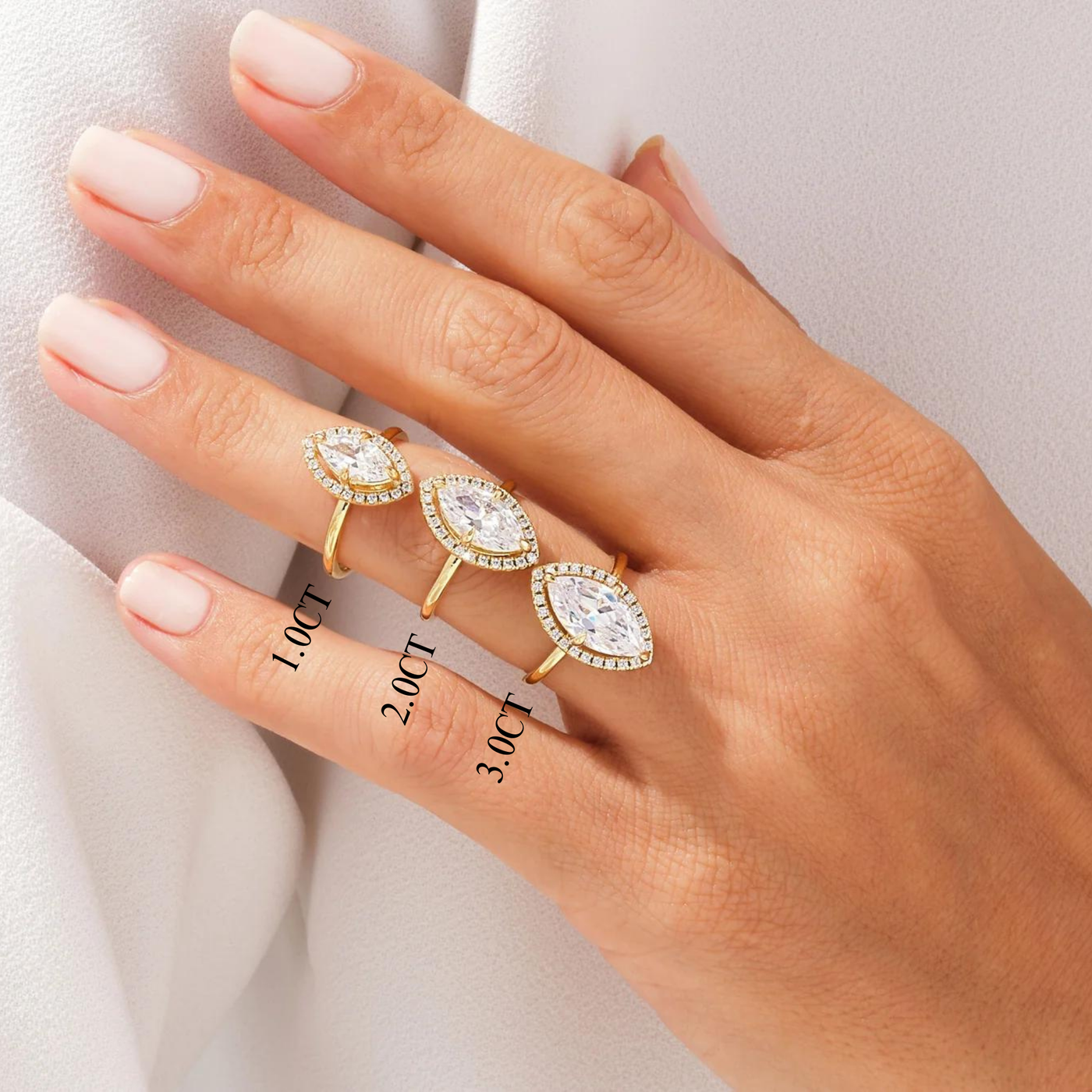 1.0CT Marquise Diamond Halo Moissanite Engagement Ring
