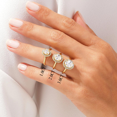 1.0CT Oval Diamond Halo Moissanite Engagement Ring