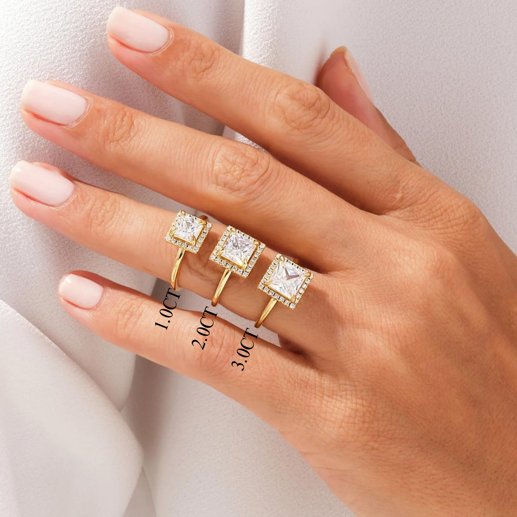 1.0CT Princess Diamond Halo Moissanite Engagement Ring