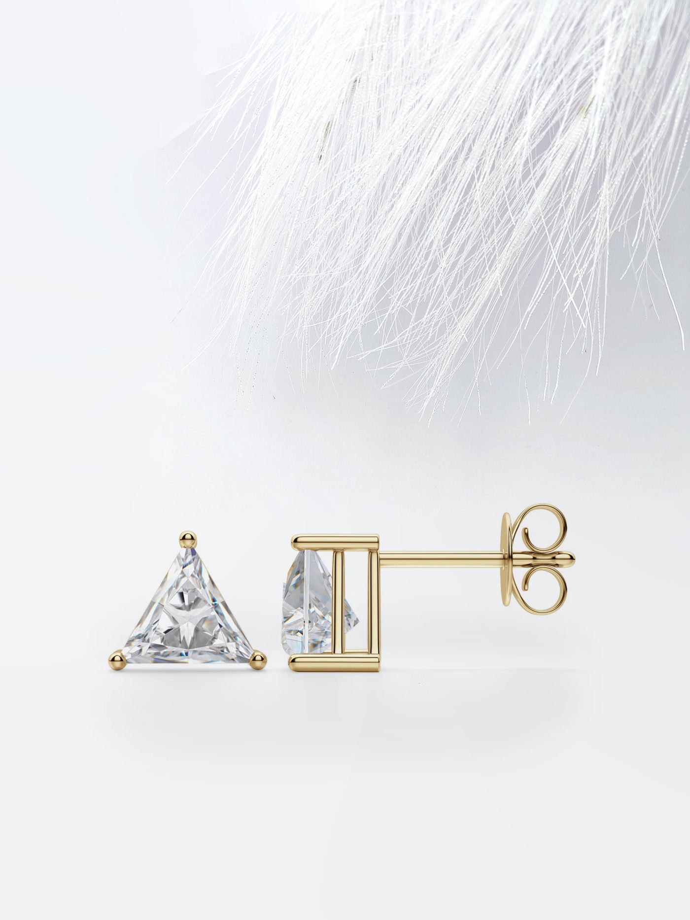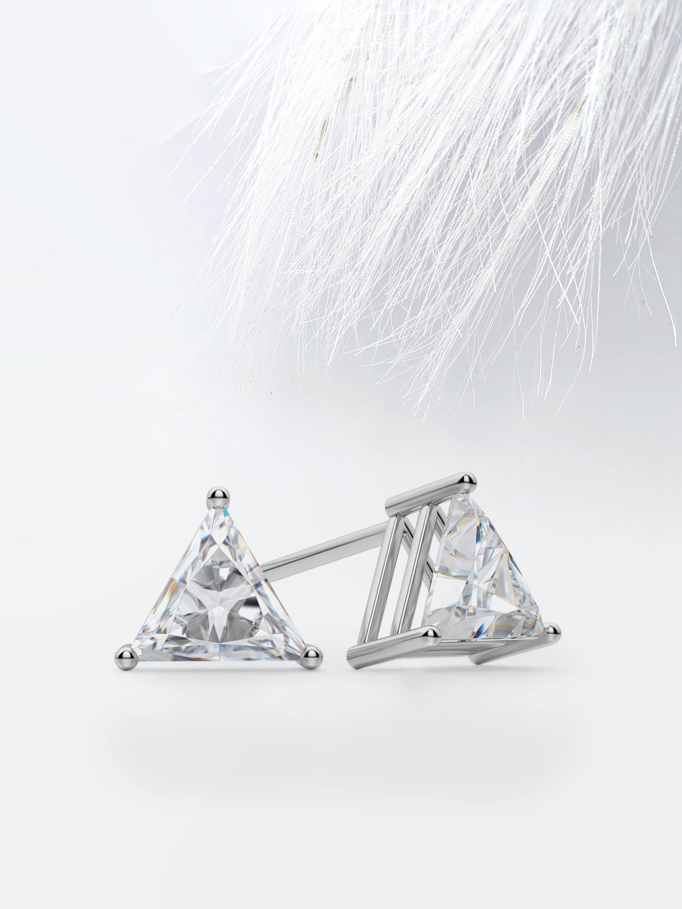 ✥ Introducing our 1.0CT Triangle Cut Stud Moissanite Diamond Earrings for Women, a unique and contemporary addition to your jewelry collection. Each earring features a dazzling 1.0 carat triangle-cut Moissanite stone delicately set in a classic stud design, radiating brilliance and sophistication. The triangular shape of the cut adds a modern and geometric flair to these earrings, making them a stylish choice for any occasion. Crafted with ethically sourced Moissanite stones and diamonds, renowned for their exceptional sparkle and durability, these earrings offer a sustainable and eco-friendly alternative to traditional diamonds. Elevate your look with these exquisite Triangle Cut Stud Moissanite Diamond Earrings, and adorn yourself with beauty and elegance that stands out from the crowd.