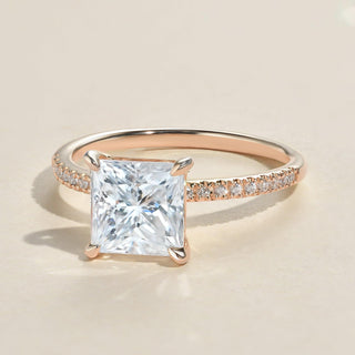 1.18 CT Princess Cut Solitaire Pave Moissanite Engagement Ring