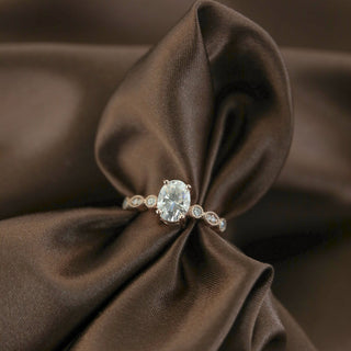 2.5CT Oval Moissanite Unique Pave Diamond Engagement Ring
