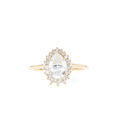 1.25ct Pear Cut Cluster Halo Moissanite Diamond Engagement Ring