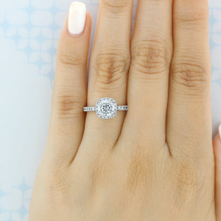 1.0ct Round Brilliant Halo 4 Prong Moissanite Solitaire Engagement Ring