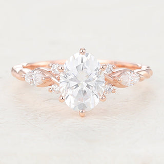 1.33 CT Oval Shaped Moissanite Cluster Engagement Ring