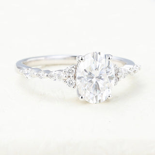 1.33 CT Oval Shaped Moissanite Pave Setting Engagement Ring