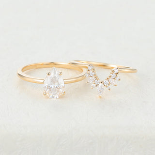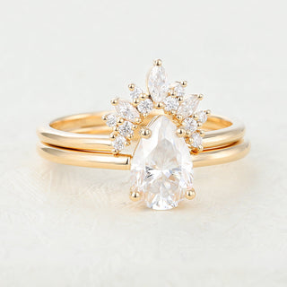 1.33 CT Pear Moissanite Solitaire Bridal Ring Set