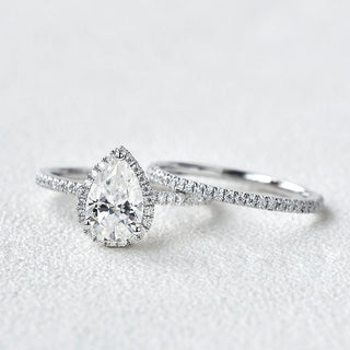 1.33CT Pear Cut Moissanite Diamond Halo Engagement Ring Bridal Set