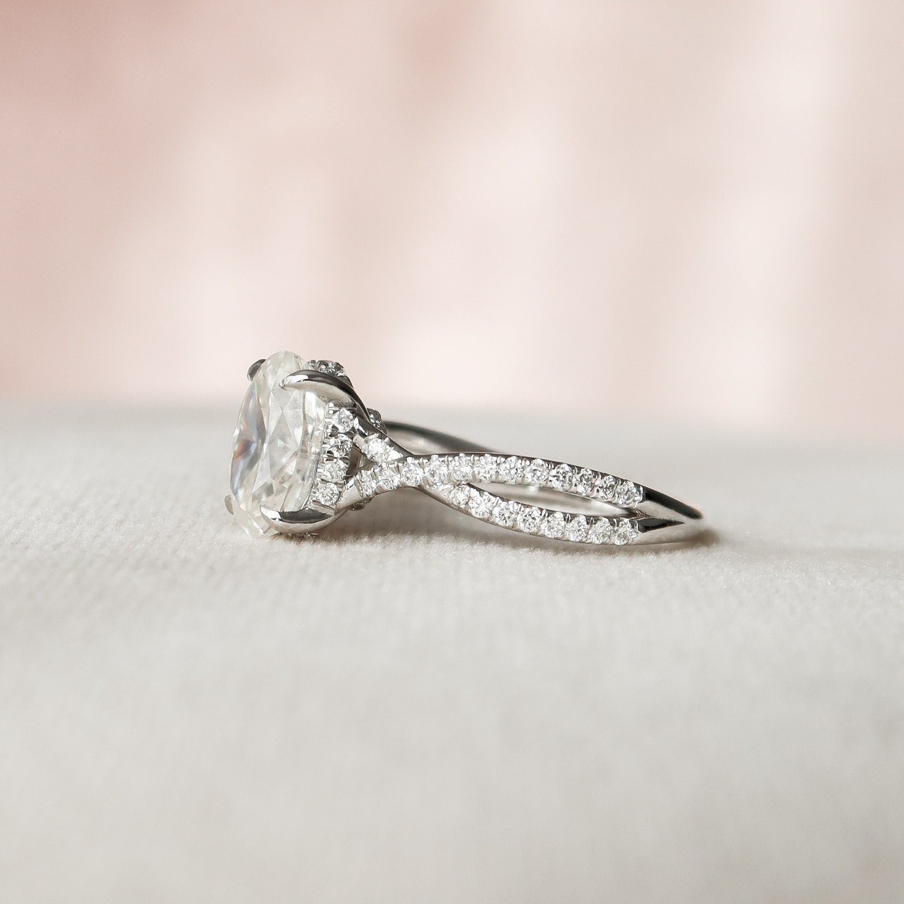 1.50CT Oval Cut Moissanite Split Shank Engagement Ring