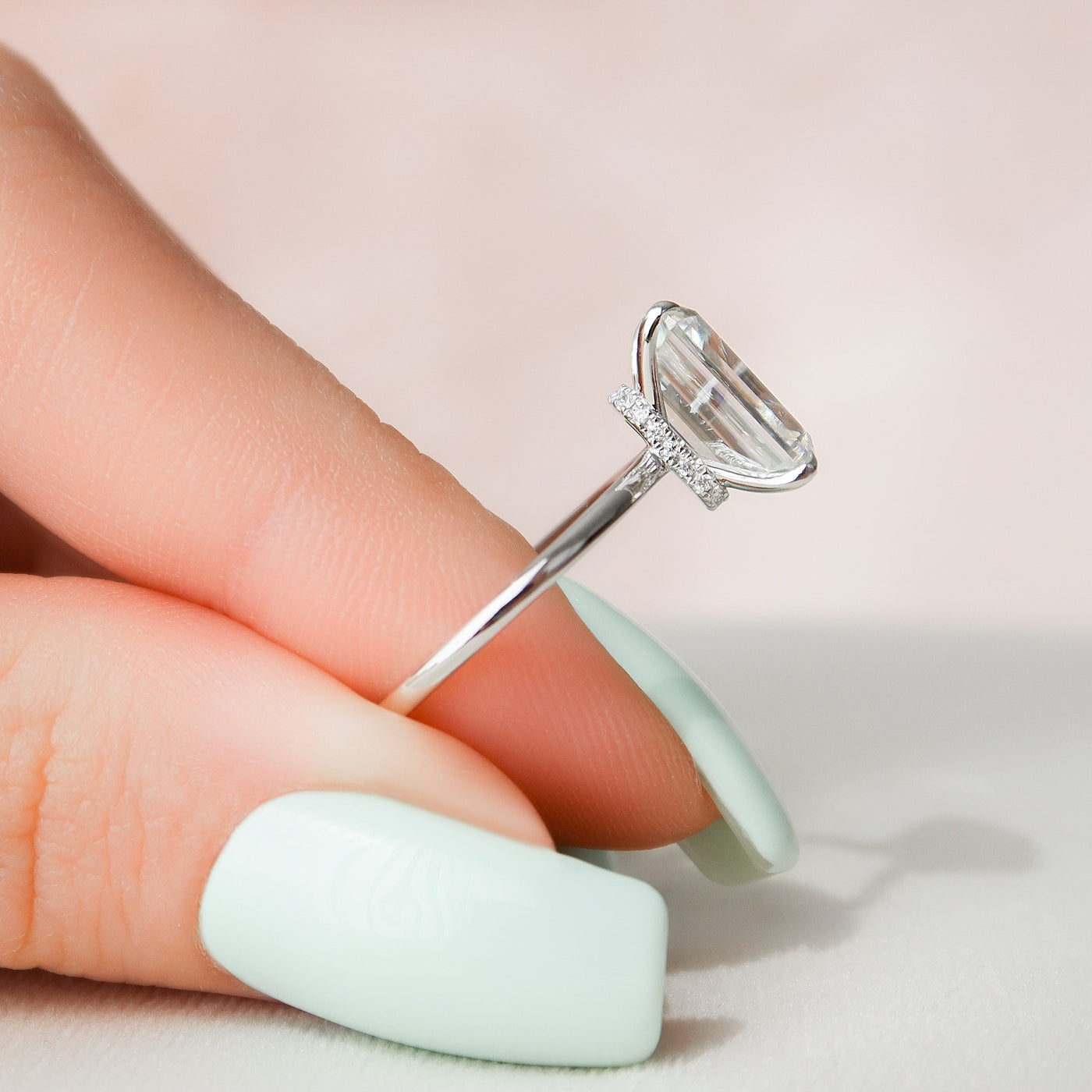 4.50CT Emerald Cut Hidden Halo Moissanite Diamond Engagement Ring